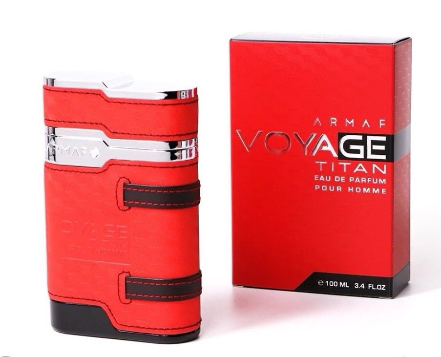 Voyage Titan Pour Homme de Armaf es una fragancia de la familia olfativa Amaderada Especiada para Hombres. Las Notas de Salida son cardamomo, canela, pimienta rosa y bergamota; las Notas de Corazón son geranio, jazmín, lavanda, incienso y ládano; las Notas de Fondo son tabaco, madera de oud, sándalo, vainilla, vetiver y ambroxan.