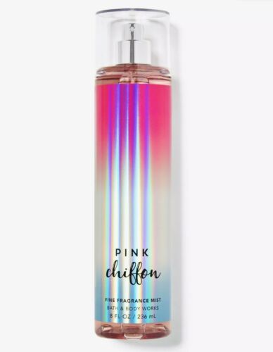 Pink Chiffon de Bath and Body Works es una fragancia de la familia olfativa Ámbar Floral para Mujeres. Pink Chiffon se lanzó en 2012. Las Notas de Salida son bayas silvestres, pera, durazno (melocotón) y mandarina; las Notas de Corazón son flor de manzano, flor de tiaré, jazmín y nenúfar (lirio de agua); las Notas de Fondo son vainilla, coco, orquídea, almizcle, heliotropo y sándalo.