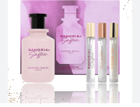 Sangria+Saffron de Michael Malul London es una fragancia de la familia olfativa para Hombres y Mujeres. Sangria+Saffron se lanzó en 2023. La Nariz detrás de esta fragrancia es Gwen Gonzalez. Las Notas de Salida son azafrán, manzana verde y naranja; las Notas de Corazón son frambuesa, rosa de Damasco, jazmín y lirio de los valles (muguete); las Notas de Fondo son ámbar gris y gamuza.