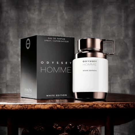 Odyssey Homme White Edition de Armaf es una fragancia de la familia olfativa Oriental Fougère para Hombres. Las Notas de Salida son pimienta rosa, yuzu y toronja (pomelo); las Notas de Corazón son hojas de violeta y notas marinas; las Notas de Fondo son ámbar, Amberwood y madera de gaiac.