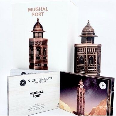 Niche Emarati Mughal Fort de Lattafa Perfumes es una fragancia de la familia olfativa Oriental Vainilla para Hombres y Mujeres. Esta fragrancia es nueva. Niche Emarati Mughal Fort se lanzó en 2024. Las Notas de Salida son cardamomo y pimiento morrón; las Notas de Corazón son caramelo y cedro; las Notas de Fondo son ámbar, vainilla y almizcle.