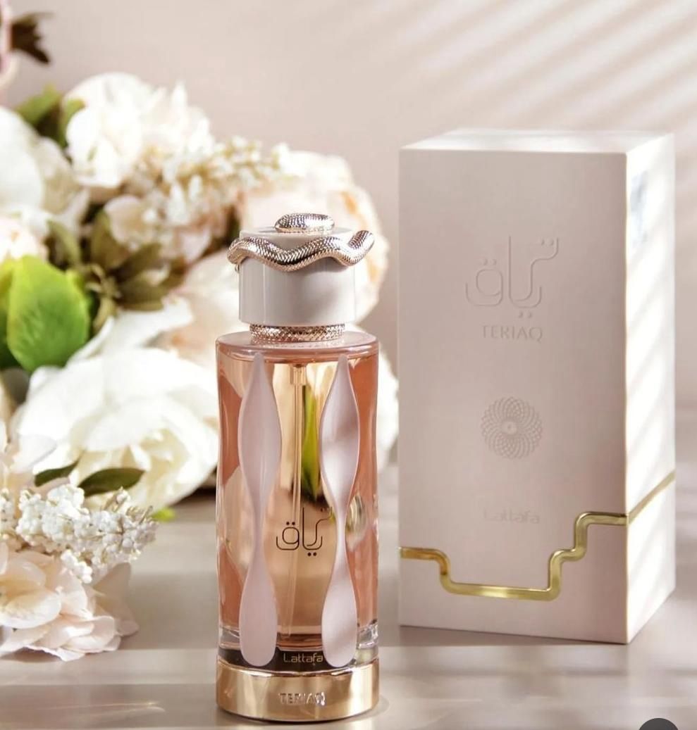 Teriaq de Lattafa Perfumes es una fragancia de la familia olfativa para Hombres y Mujeres. Esta fragrancia es nueva. Teriaq se lanzó en 2024. La Nariz detrás de esta fragrancia es Quentin Bisch. Las Notas de Salida son caramelo, almendra amarga, chabacano y pimienta rosa; las Notas de Corazón son miel, ruibarbo, flores blancas y rosa; las Notas de Fondo son cuero, vainilla, almizcle, vetiver y ládano.