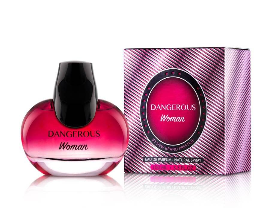 DANGEROUS de NEW BRAND PRESTIGE, una atractiva fragancia gourmand oriental rematada con ricas notas aromáticas de almendra, anís, pomelo, aceite de naranja, palma, caramelo y un suave toque de notas florales. Ideal para mujeres seductoras y seguras.
