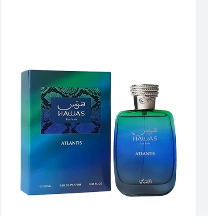 Hawas Atlantis de Rasasi es una fragancia de la familia olfativa para Hombres y Mujeres. Esta fragrancia es nueva. Hawas Atlantis se lanzó en 2025. Las Notas de Salida son bergamota, limón (lima ácida), manzana y canela; las Notas de Corazón son notas acuosas, flor de azahar del naranjo, ciruela y cardamomo; las Notas de Fondo son trozos de madera a la deriva, ámbar gris, almizcle y pachulí.